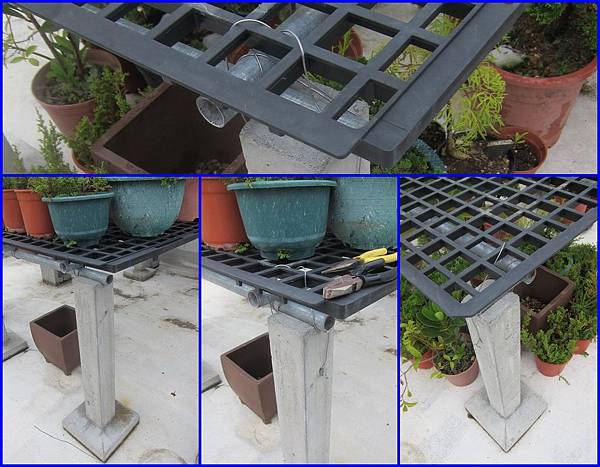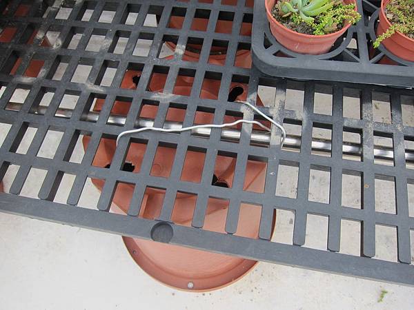 ▼我的塑膠桶盆架,也加上鐵線固定,以免被風吹走