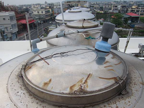 ▼頂樓的水塔當然也是要檢查的,水塔要裝滿水,水塔蓋要加鐵線,以防被吹走