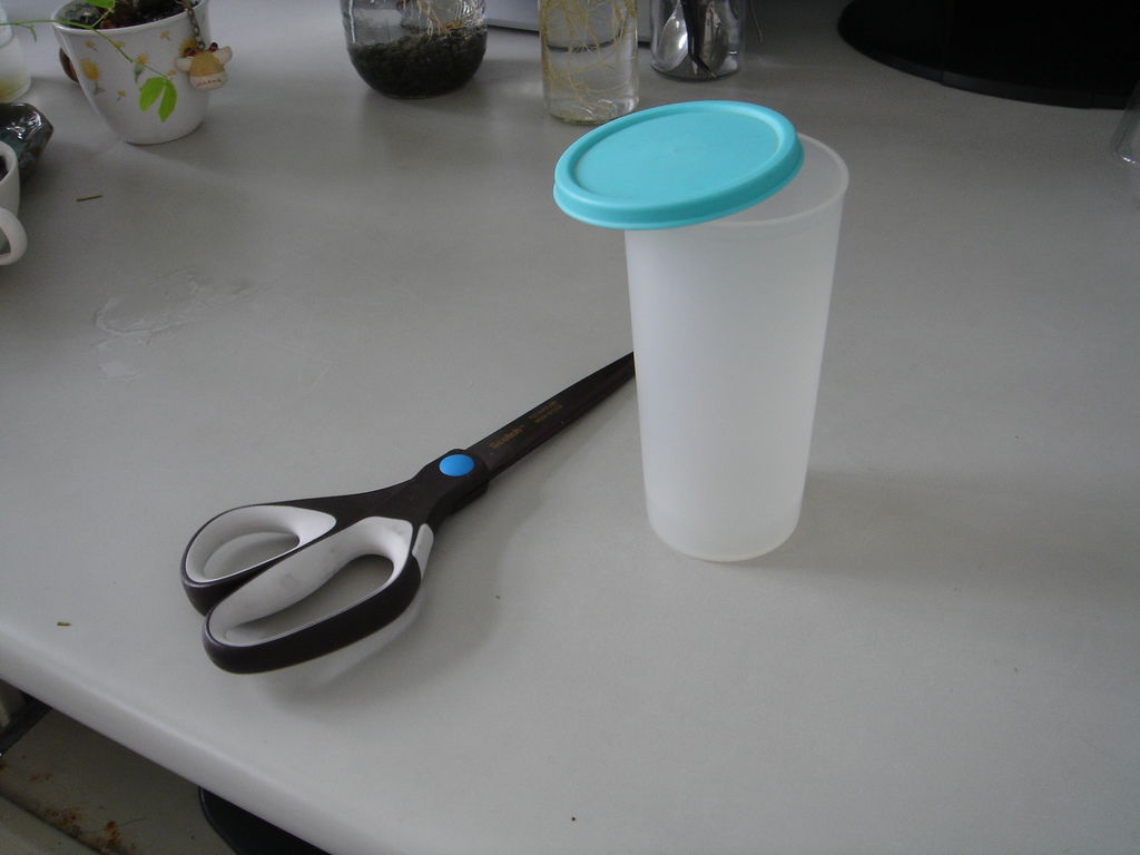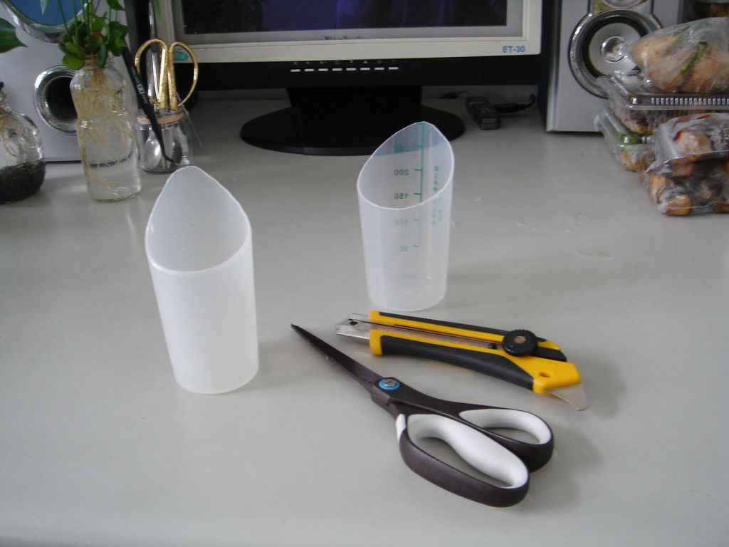 ▼DIY的材料-塑膠水杯一個;工具-剪刀一支