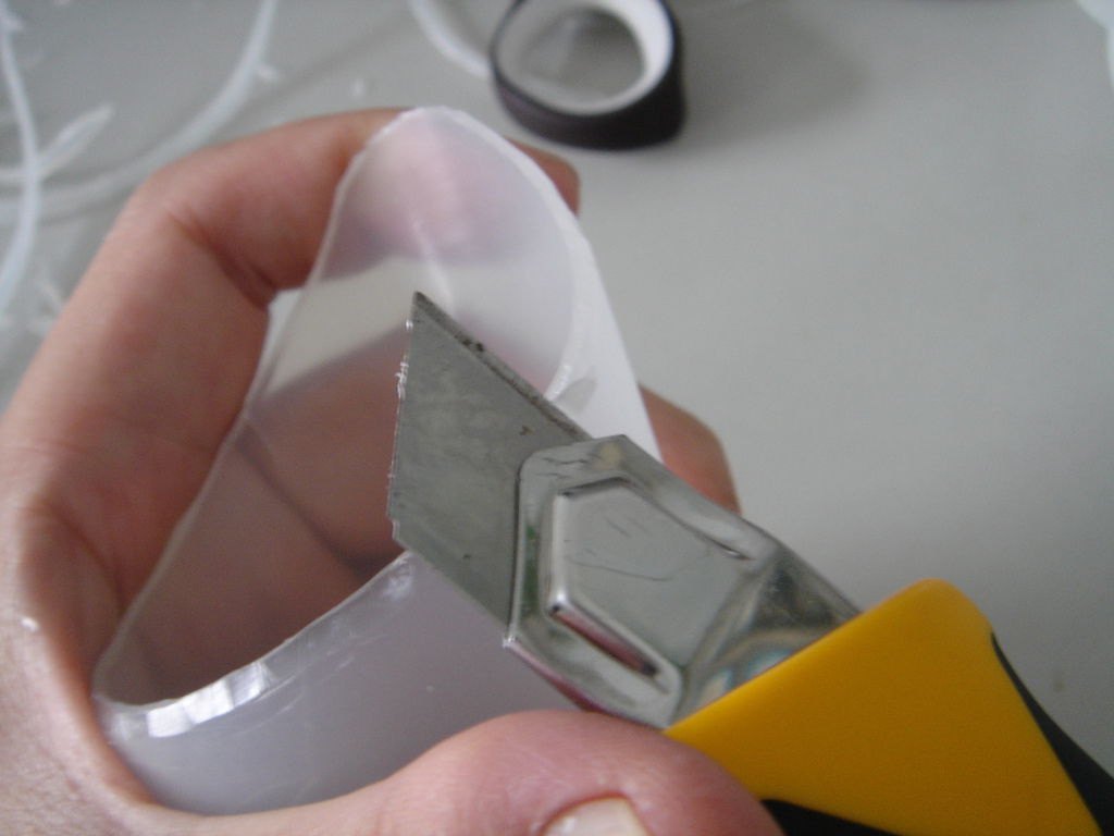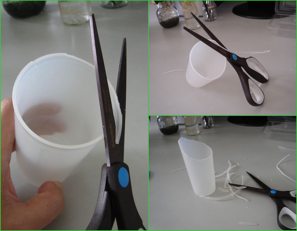 ▼開始用剪刀修剪杯子,斜斜的剪,小塊~小塊條狀修剪,剪出斜口杯