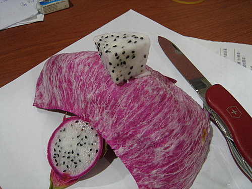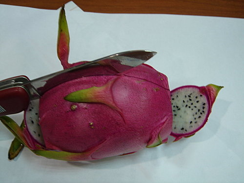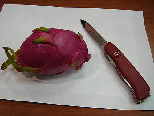 要切火龍果很簡單,準備一支水果刀,當然不一定要準備像照片中的"瑞士刀",一般的水果刀就好了