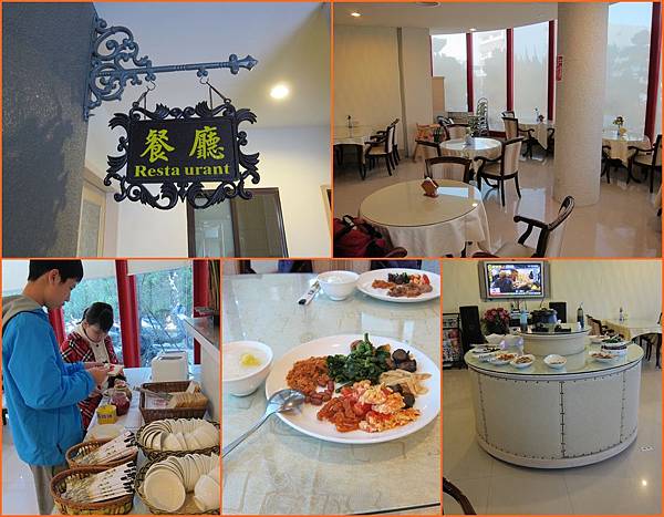 鹿港"紅樓精品旅館"雖是一家汽車旅館,但我們住的四人房,汽車沒有放在房間下面,而是在露天的停車場,住房另有附增早餐,是在一樓的餐廰用餐,東西雖然不多,但可以吃得很飽,有土司、麵包、稀飯、清粥小菜、咖啡、牛奶,東西還算不少。