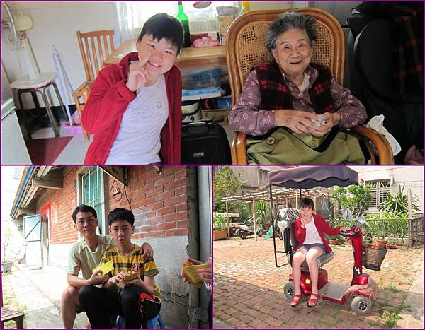 ▼開心與曾祖母合照,除了摺金紙,還騎著阿祖的電動四輪車,逛來逛去~