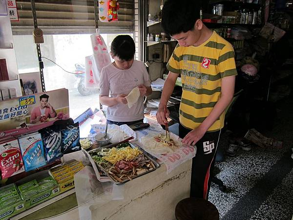 包潤餅不會很難,只要把食材按順序擺入裡面,再包起來就好了~看似簡單,但包起來還有這麼點技巧存在。