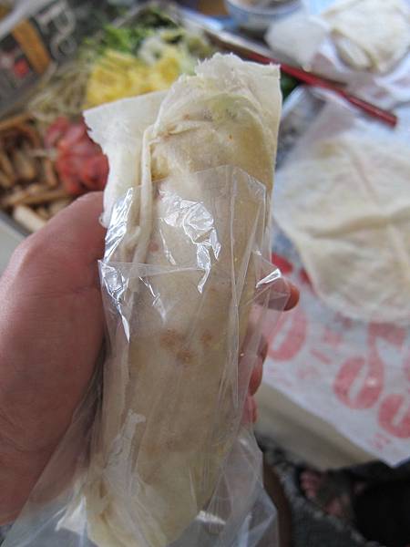 ▼潤餅完成~包好了拿個塑膠袋套起來,避免吃到最後,有湯汁滴出來