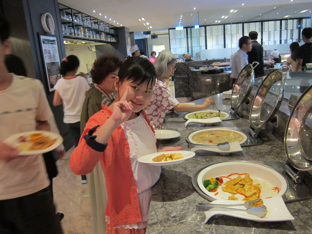 "艾可柏菲"餐廳,有早餐、午午茶、晚餐,我們是中午用餐,是吃午午茶,它沒有分午餐及下午餐,午午茶價位都一樣,雖是午午茶,但餐點可一點都不少,種類很多~生菜沙拉、日本料理、港式、中式、牛排、現煎、現煮、麵包、甜點、水果、飲料、冰琪淋...很多~