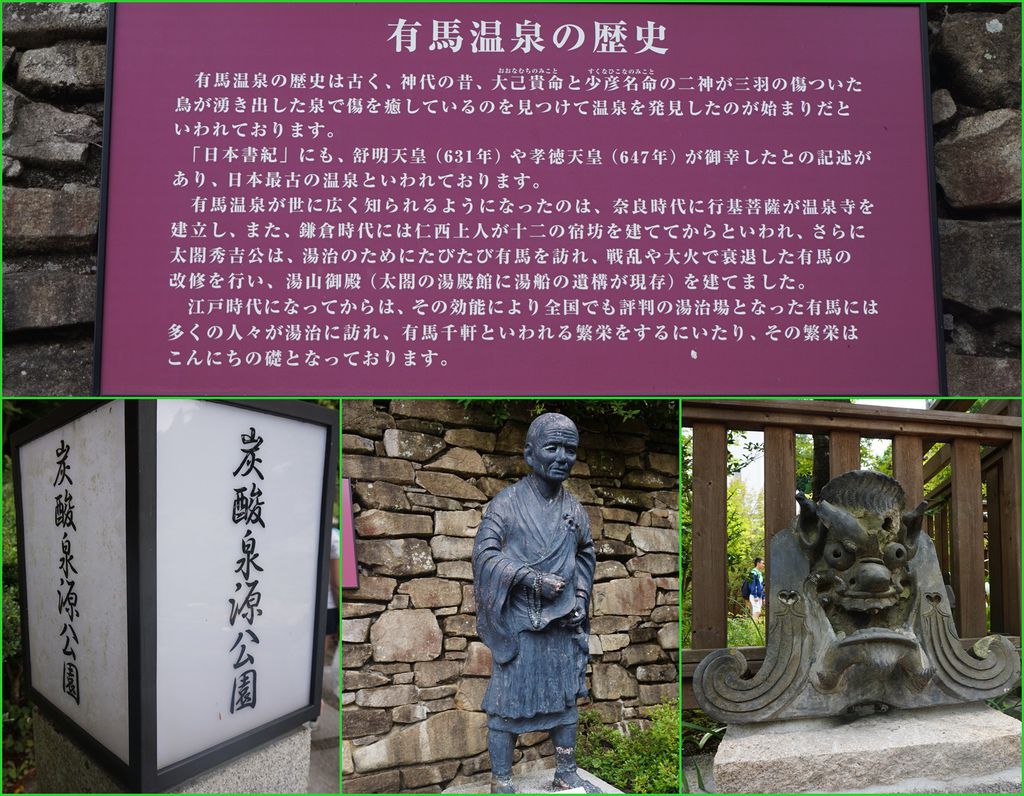 一到有馬溫泉原本要馬上泡足湯(免費),但遇到同旅行社的一團,搶在我們前頭在泡腳了,所以我們就先在溫泉老街裡逛逛,從金湯走到銀湯,再走到碳酸泉源公園,回程再到金湯的外面的足湯泡腳(免費足湯就在金湯外面),而銀湯剛好在整修中,所以沒能參觀到。