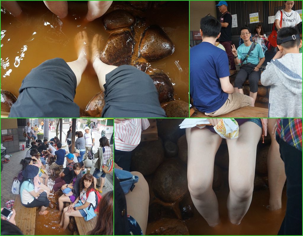 從有馬溫泉的老街走上去"銀湯"及"碳酸泉源公園"再走下來,腳有點酸酸,剛好泡個"足湯",舒服一下,而足湯就在金湯的外面,這裡是免費泡腳的地方,大約可以同時容納20人左右,水質鐵銹色,水溫有適中,但有人在出水口上方就覺得很燙,不過在們坐在中間的位置,水溫剛好,我和太太都有下去泡腳,而我們家2個小朋友因為人多,又懶得換鞋子(泡腳~濕答答~),所以就在一旁觀看,沒泡腳,只能說"太可惜了",來到這麼遠的有馬溫泉,沒有體驗一下,實在可惜。