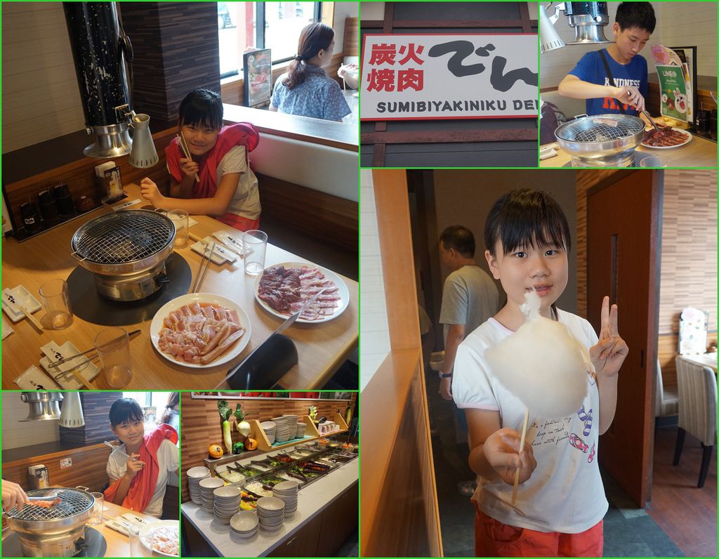 離開免稅店,就開車往大阪市的方向前進,午餐是"炭口燒肉"吃到飽,說真的我們全家還沒吃過這樣的燒烤,直接在桌上烤肉,很新鮮,我們還以為會像前一晚"神戶牛排"那樣整間餐廳"油通通",但吃這一餐後,覺得還好,可能是它的抽風設備做的不錯吧。