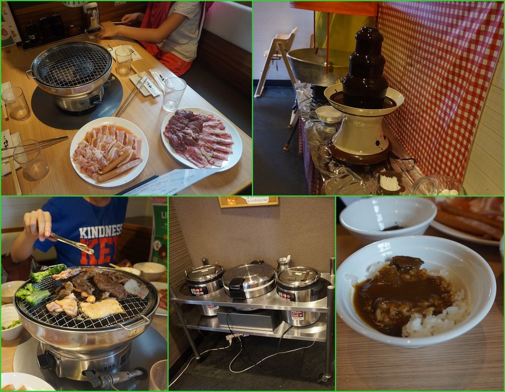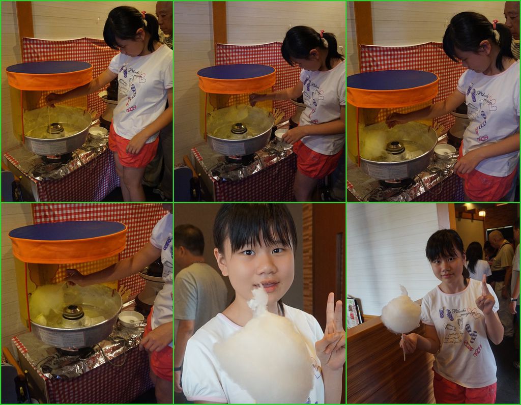 餐廳除了自己烤肉很新鮮外,另外也有免費的生菜沙拉、白飯(可以淋上好吃的咖哩~有肉的哦~),飲料、冰淇淋也有,另外很特別的還有巧克力塔及棉花糖製造機,這一台"棉花糖製造機"是最受歡迎的,大家都排隊,要自己DIY做一支屬於自己的棉花糖,有趣又好吃。