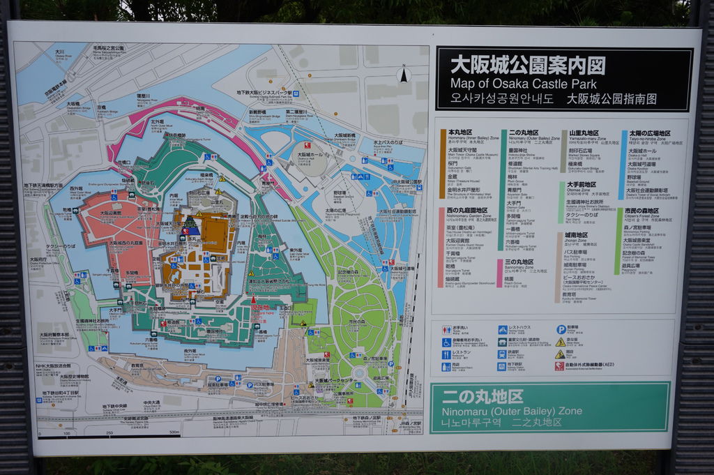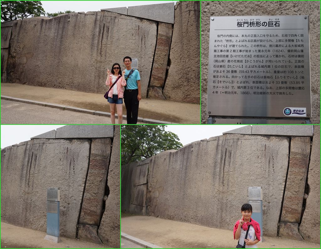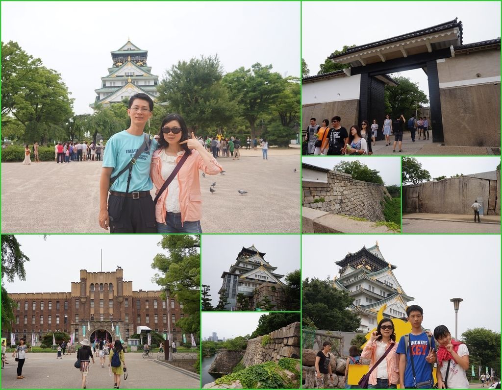 吃飽飽後,搭著遊覽車,不久就到了大阪城,要來看看歷史上有名的『豐臣秀吉』所建造大阪城及天守閣,大阪城與名古屋城、熊本城齊名,都同為日本的三大名城,大阪城公園就包含了大阪城及天守閣,裡面還有大阪市立博物館,大阪城是日本名將『豐臣秀吉』所建造,它的城牆大部份都是用雄偉巨大的石頭所砌造而成的,佔地約百萬坪,分為本丸、二之丸和城廊之外的三之丸,四周以護城河圍繞,所以這一座城堡是"易守難攻"的軍事要塞。