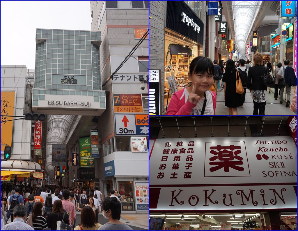 我們在BIC CAMERA耗了太多時間,排隊結帳也等很久,所以出了BIC CAMERA,再逛戎橋筋商店街及心齋穚筋就已經沒什麼時間,只好走馬看花,邊走邊拍照,連找小吃都沒有,而我們只沿著"心齋穚筋"一直走到底,到大丸百貨買個化妝品,再辦理退稅,之後就趕著回集合地點,所以時間真的不夠用,沒能好好的逛街購物,而且也沒吃到"一蘭拉麵"、章魚燒、大阪燒,真的太可惜。