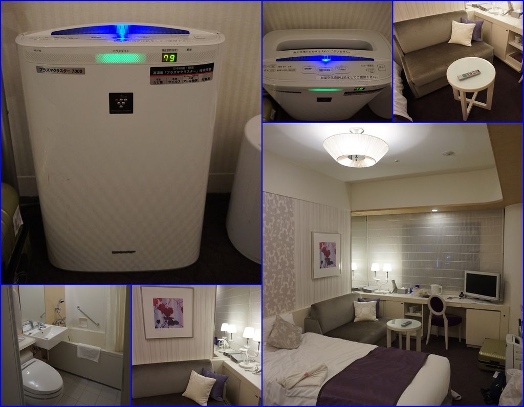 進到房間,也是很新,該有的設備都有,還有一台很特別的空氣清靜機,好像可以當暖氣使用,但我們沒有嘗試去按,只用最簡單的功能~開機~自動空氣清靜而已,這房間一切都很好,但就是空間小了點,是我們這幾天住的房間中最小的,2張單人床一擺,再加上小沙發、小桌子,就已經沒什麼空間了,我們的行李都快沒地方擺了,這是它的唯一缺點。