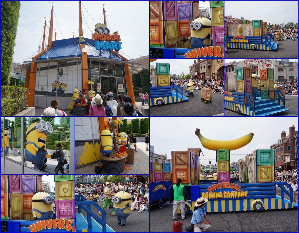 出了"回到未來"遇上了~小小兵~表演秀,好多人圍在看,拍照也不少,而我們剛好在它的後面,只好等待小小兵到後面來,才能好好的拍照,小小兵很好玩,走路晃來晃去的,園區還有賣小小兵的爆米花筒,大大一個,有不少人買,吃玩還可以帶回家當玩具或當垃圾桶~