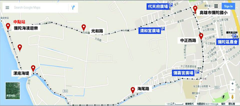 ▼路跑地圖~從國小跑到海邊再跑回國小~路程約5公里(地圖取自"彌陀港 虱目魚文化節"的FB)