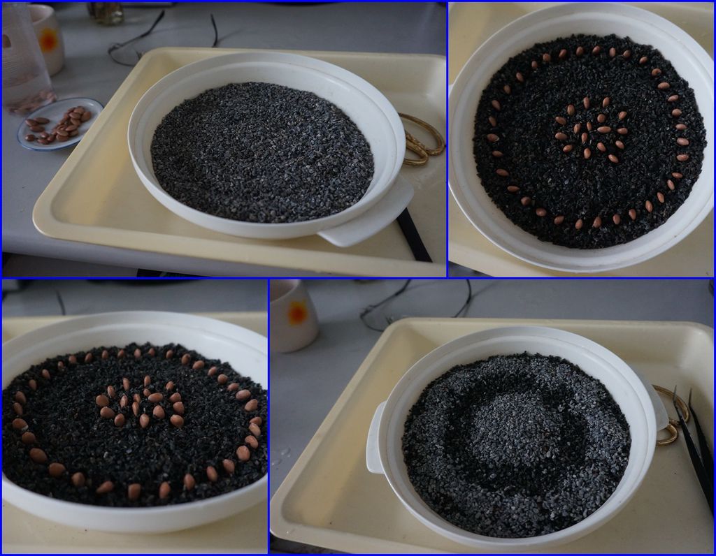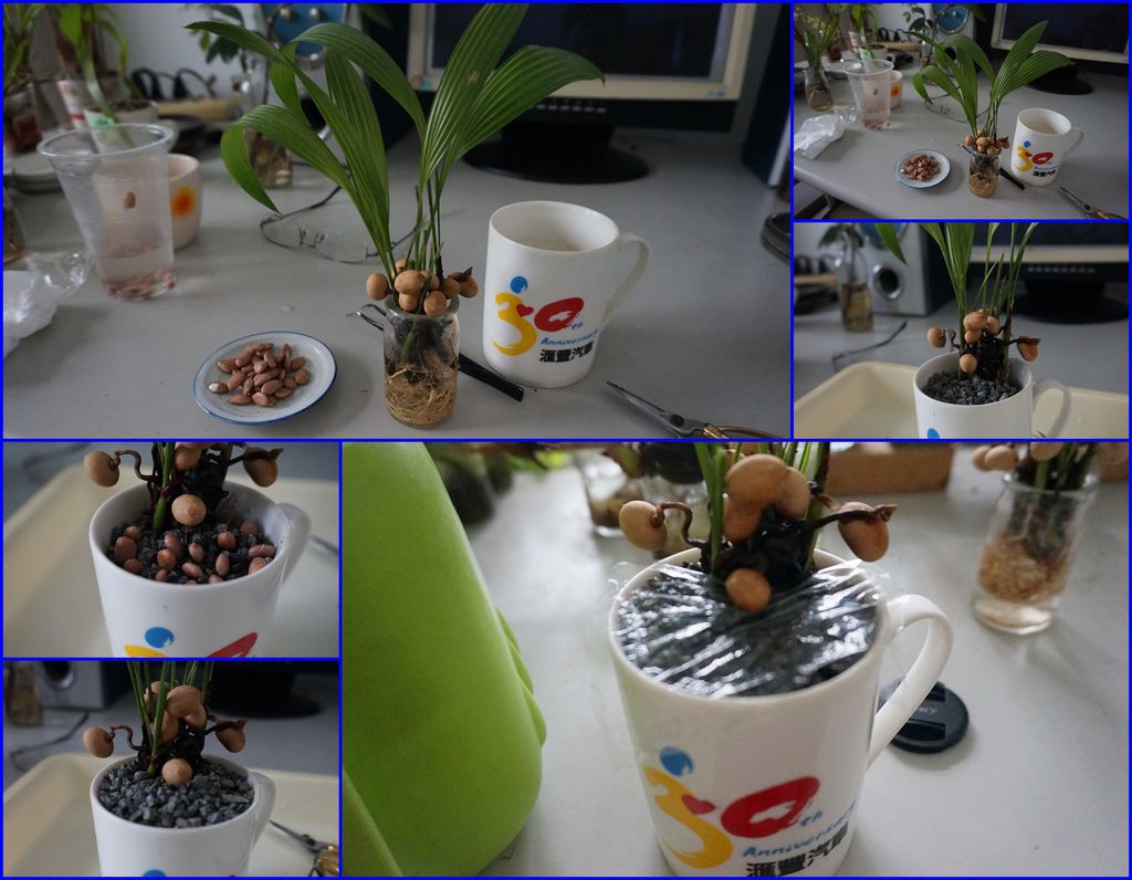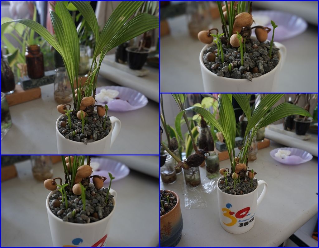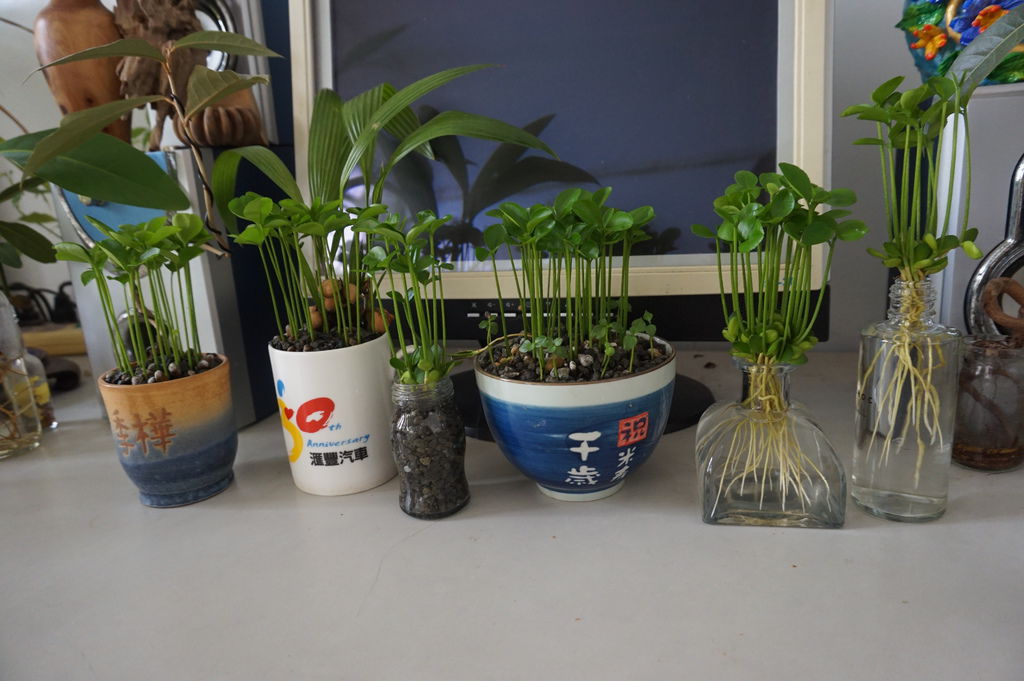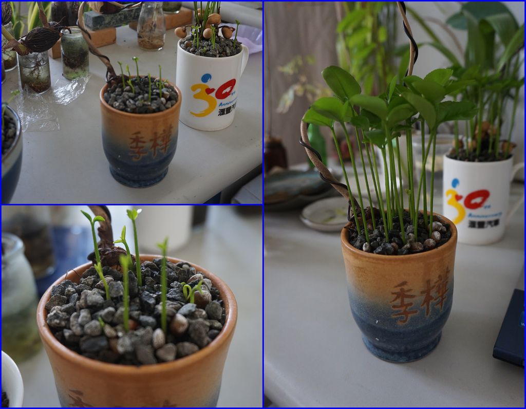 剝完殼的種子就可以種下了,以下這幾盆是麥飯石水耕或土耕的方式,可以搭配其他的小盆栽一起合植,做成組合盆栽。