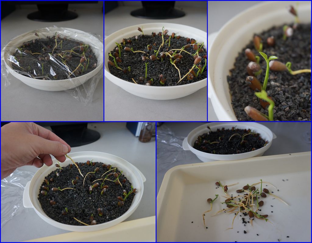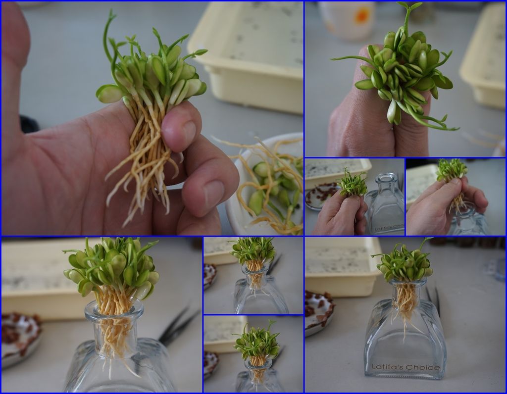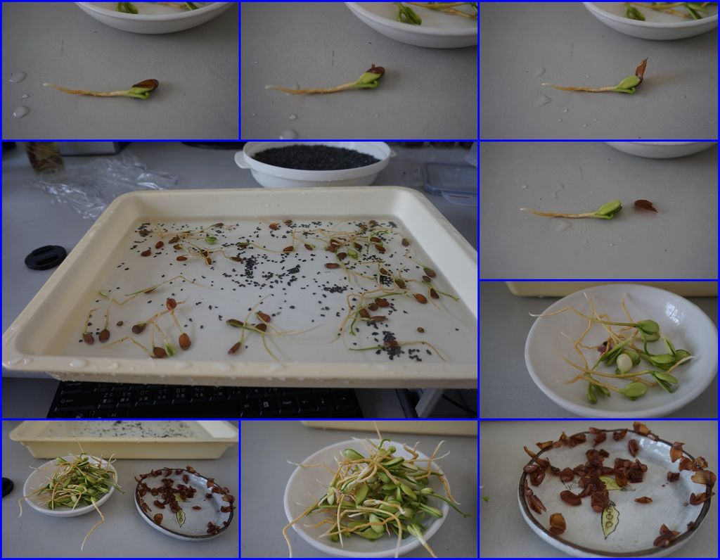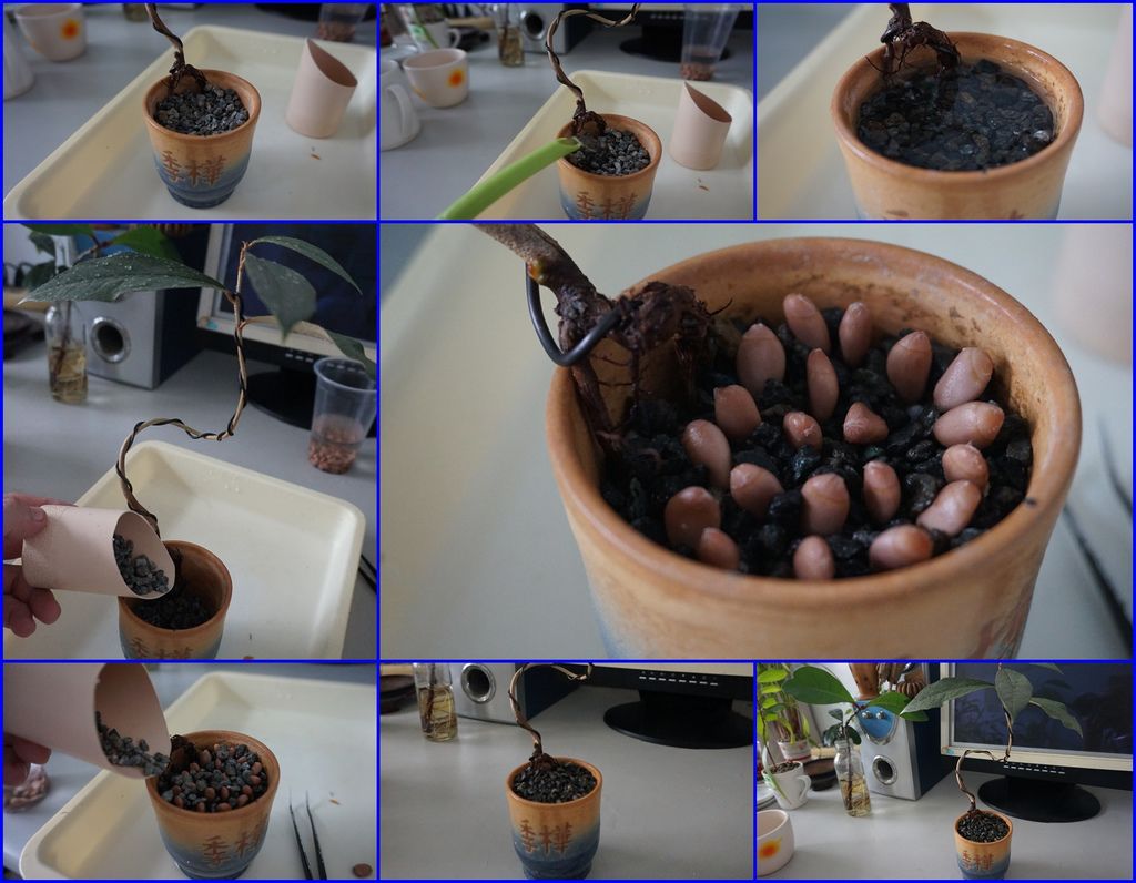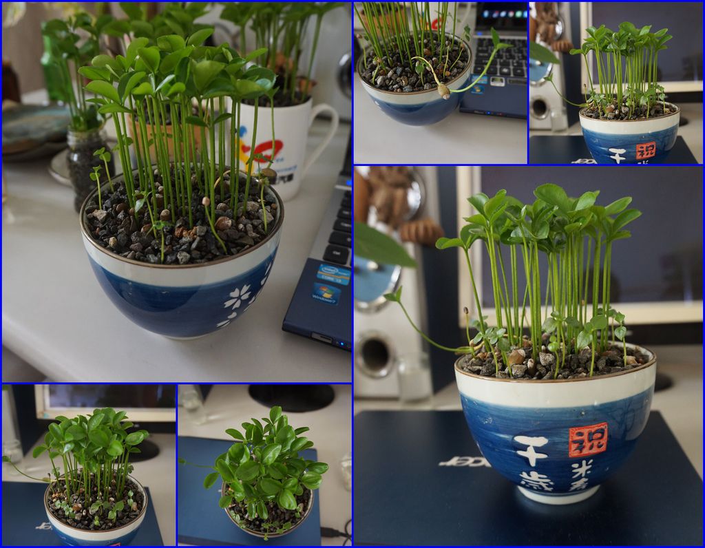 剝完殼的種子就可以種下了,以下這幾盆是麥飯石水耕或土耕的方式,可以搭配其他的小盆栽一起合植,做成組合盆栽。