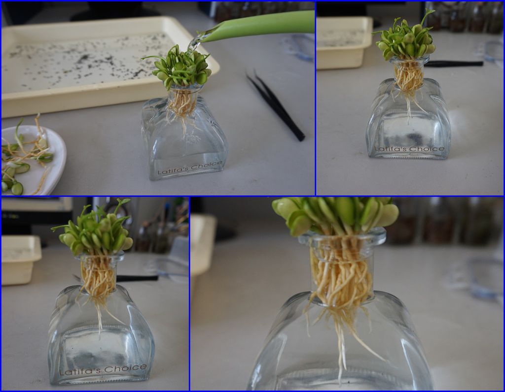 ▼種子在純水養根