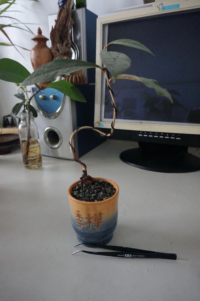 以下這盆是柚子+蒲葵的種子組合盆栽,是麥飯石水耕~