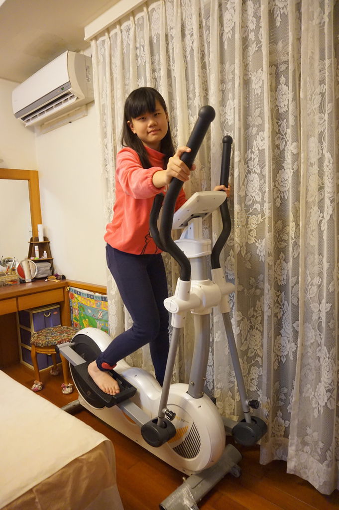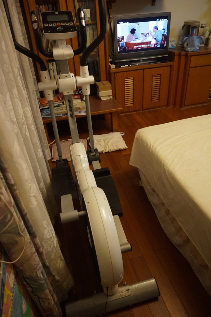 我和太太平常星期一及星期四都有運動的習慣,但做的是"靜態循環運動"(重量訓練的一種),這是一套很不錯的運動,是經過教練指導及設計,可以訓練肌耐力,對身體很有幫助,但除了這個之外,也希望偶爾能做個"有氧運動",像跑跑步或爬爬山之類的,但有時候會受到天候的影響,就沒辦法運動,如今有這一台橢圓機,我們不出門也能在家運動,做個15~20分鐘,就會有流汗的感覺了。