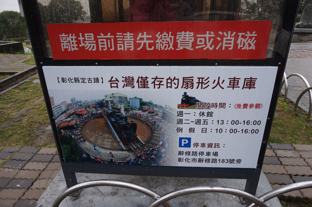 我們在八卦山時,下著小雨,在停車場發現"扇形火車庫"的看板,開放時間到下午16:00,所以我們更改一下行程,不走天空步道,只在大佛前拍拍照~逛一逛~,就離開,開車到"扇形火車庫",不到15分鐘就到了~很近~所以我們就沒有去天空步道了。