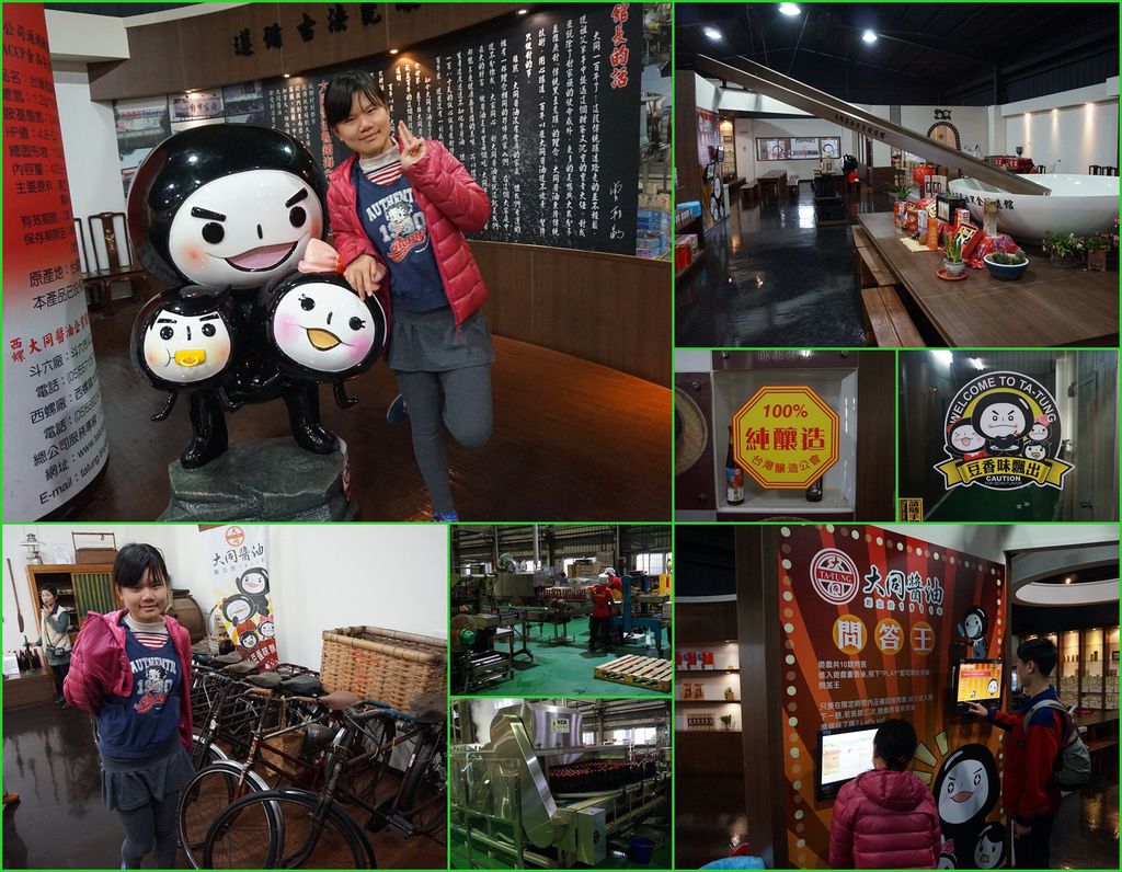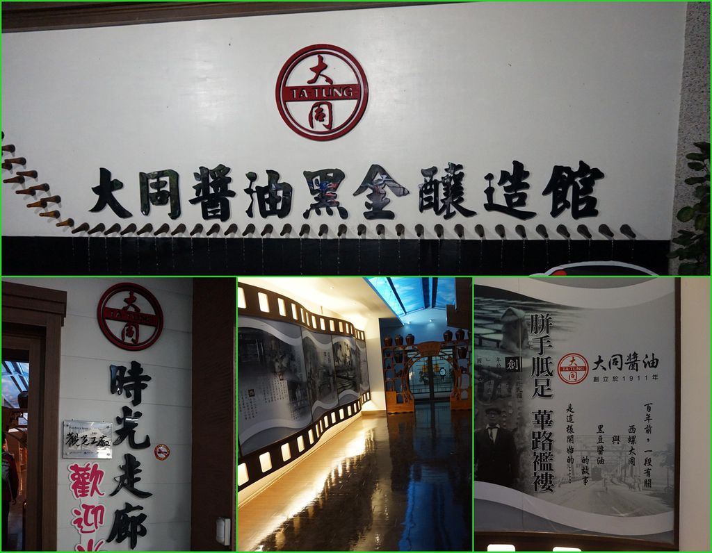 這一天的第一站,我們開車到"大同醬油黑金釀造館"這家醬油觀光工廠也同樣是在斗六,所以不到20分鐘就到了,大同醬油創立在1911年,這醬油是我小時候就有吃過的醬油,印象中甘甘甜甜的,很好吃,所以這回安排這裡,參觀醬油的製作過程,也要買一些醬油回家吃,還買了一些送人,很不錯的拌手禮。在這裡我們原本沒預約,當時外面下著大雨,開車一到大同醬油釀造館,馬上有人出來引導我們,開到有遮雨的車棚,還有專人為我們解說,很祥細的介紹大同醬油的歷史、醬油製作過程...,真的很不錯,當然也介紹了醬油產品,品嘗了不少味道的醬油,當然我們也買了不少,還有折扣。