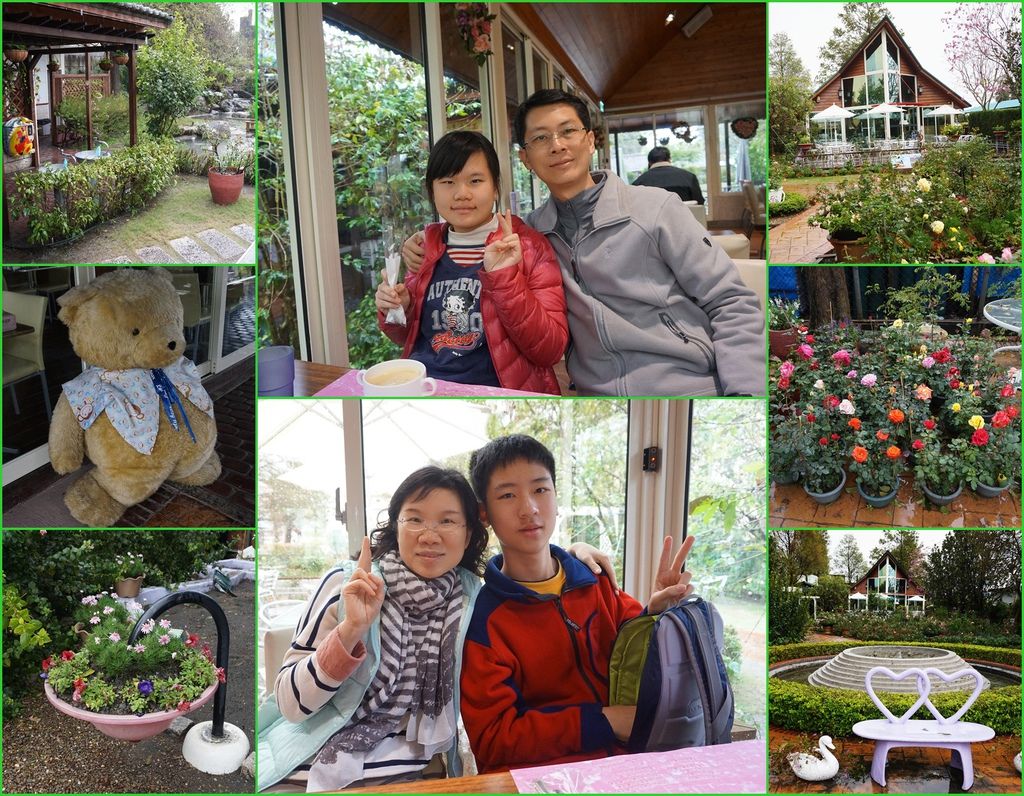 結束了醬油工廠後,就開車到田尾公路花園,我們原訂計劃是到這裡騎四輪車,全家一起騎單車,很特別也很好玩,我們全家2年前的寒假也來這裡騎過,戀戀不忘,所以這回安排來這裡騎四輪車,可惜,這回下雨,根不無法騎單車,所以只能開車在公路花園遶來遶去,約11點多就到了我們吃午餐的地方"全得玫瑰莊園",因時間很充裕,所以就慢慢的吃,吃完撐著傘,在附近的園藝店及園藝資材店逛逛,買了一些花及盆器,也算是有所收獲了,在這裡買盆器,竟然都打5折,真的是樣式多又便宜。