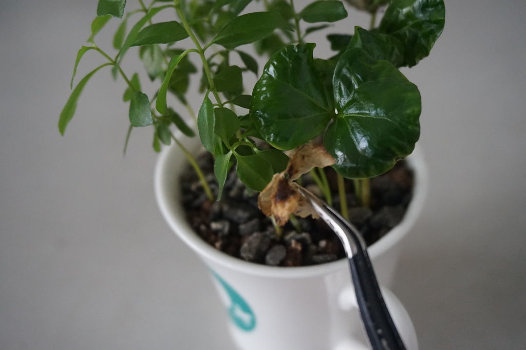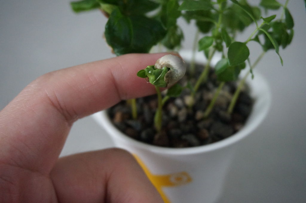 ▼啡咖葉子展開~種子皮會自然乾癟掉落,不用強制取下,硬取會傷到裡面的葉子哦