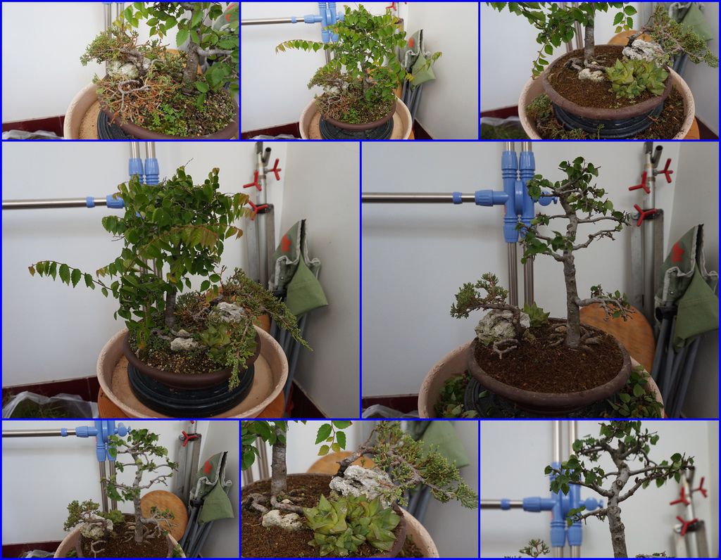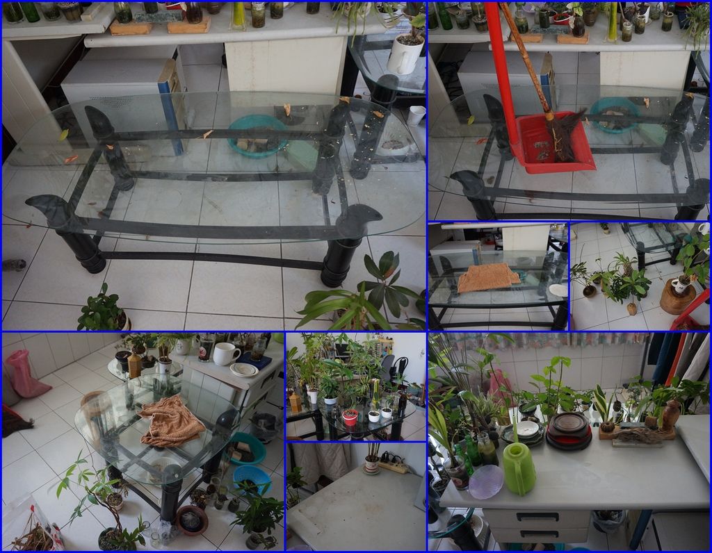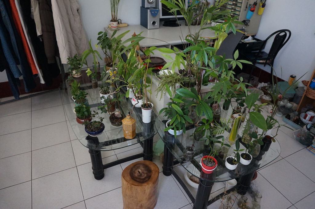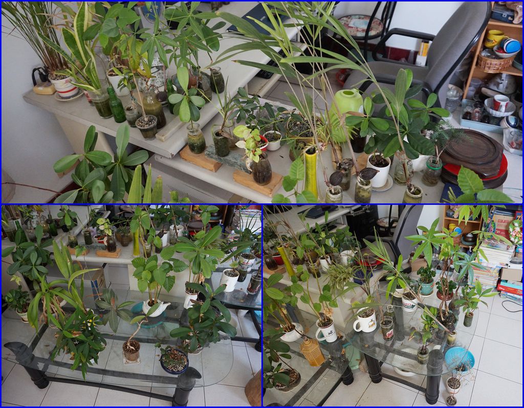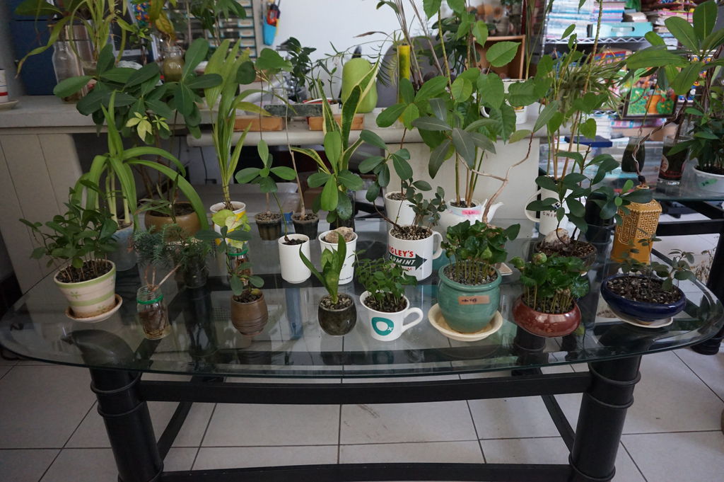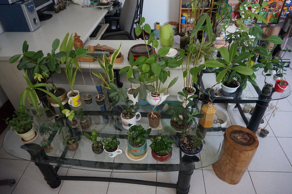 家儀的室內種子盆栽區,這一年來數量有進有出,達到一個平衡狀態,也就是種出來的種子盆栽,大部份都送人了,自己只留一些下來而已,所以維持平衡,但有些種久了,種子盆栽的樣子就容易走樣,而且擺得也很凌亂,於是找了一個假日上午,很努的整理一番,修修剪剪,桌子擦一擦,重新擺放,於是室內種子盆栽區又變得整齊、乾淨的小森林了。