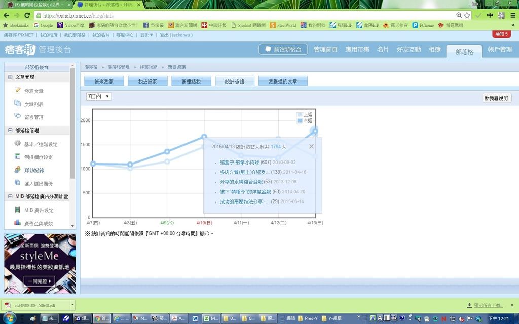 ▼部落格人氣~2016年4月14日當天有1784人次造訪~破單日最高紀錄