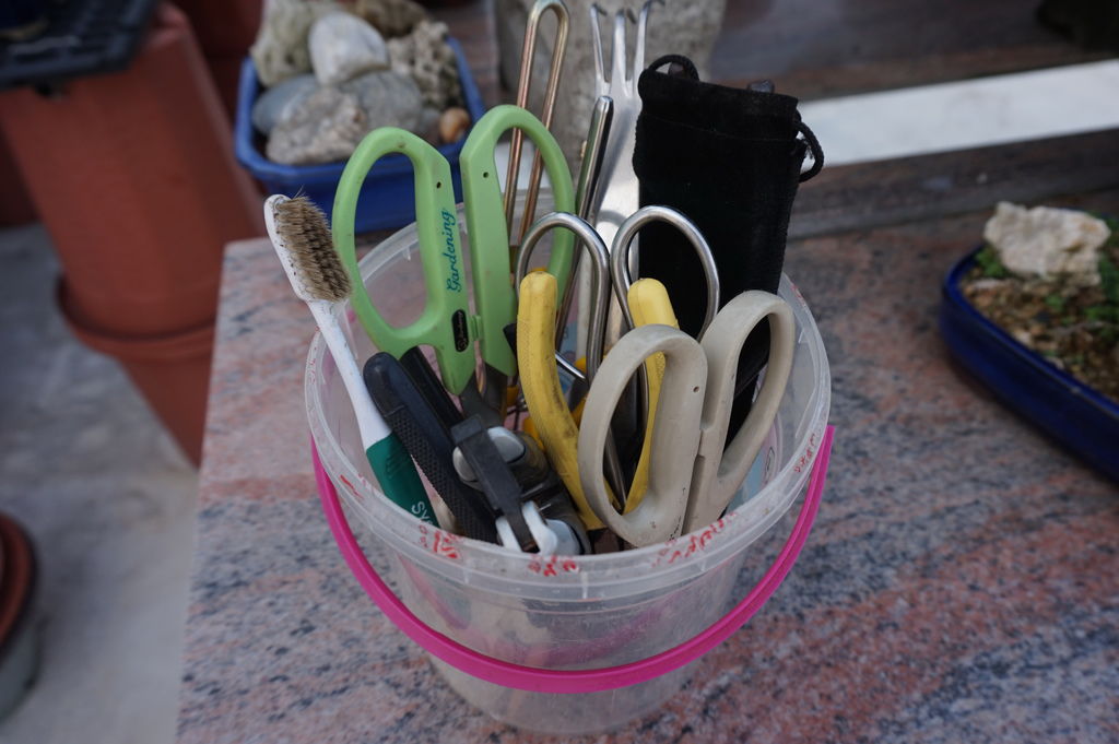 ▼盆栽修剪、拔草及整理都靠這一桶工具