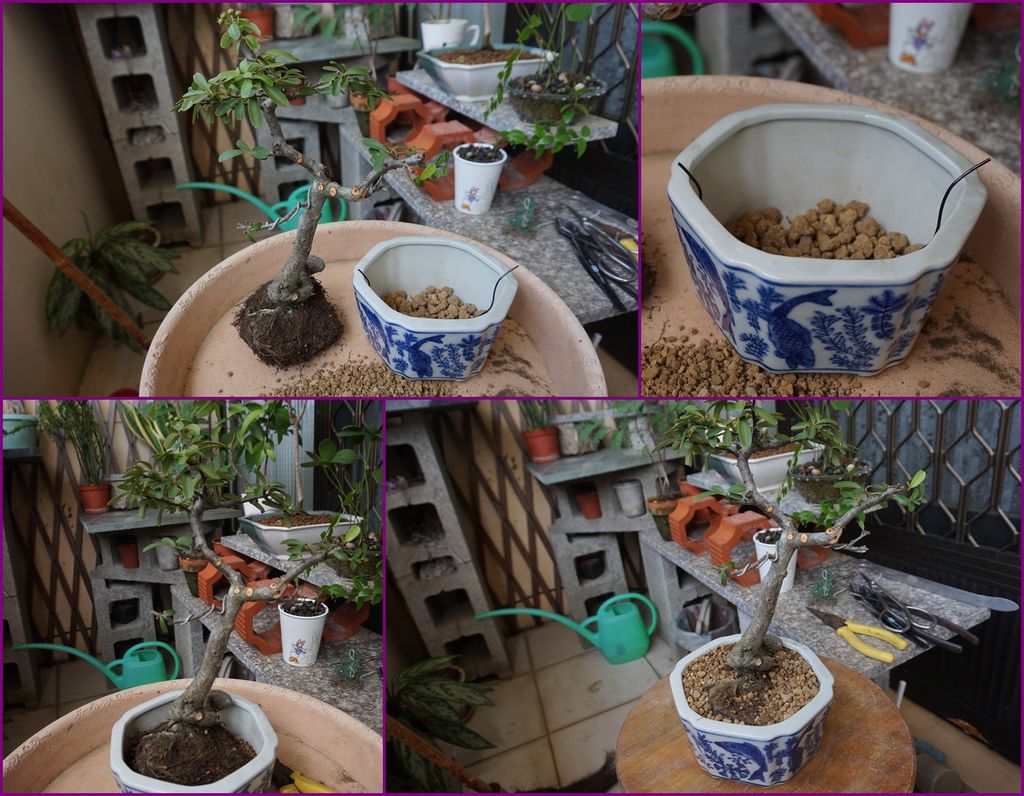 經過第一次換盆後,我將這盆狀元紅拿到我家陽台,西晒半日照,經過了1~2年,成長的不是很好,而且前一陣子又發生被"風"或"鳥"給弄掉落到地上,結果"破盆了",於是在今年的9月份又再度換盆,給它一個新的空間成長。