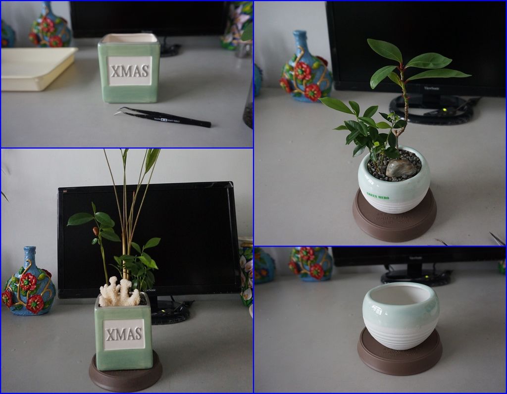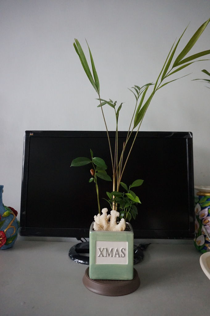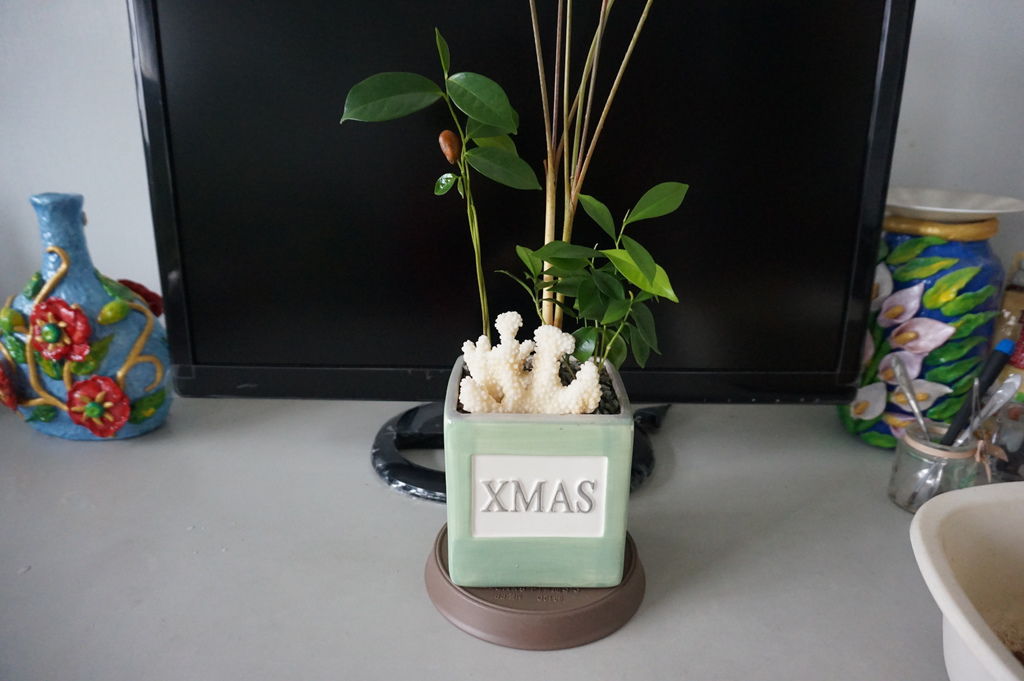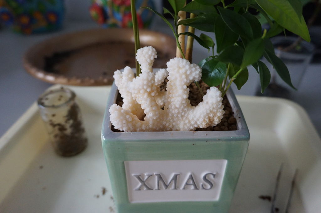 這盆組合盆栽~上面還配了一個珊瑚,這個珊瑚是5年前,我們全家去墾丁"佳樂水"玩的時候,買回來的紀念品之一,現在終於使用到了,配上盆栽~有加分的效果,感覺很搭配。