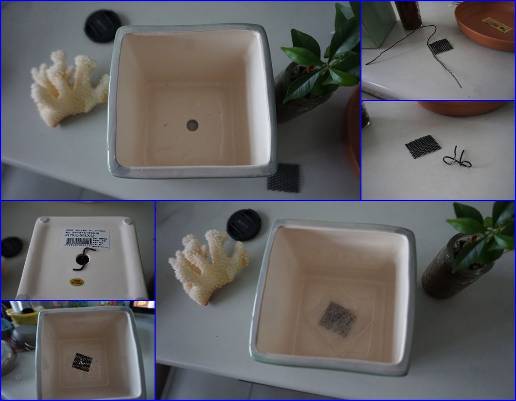 ▼盆器的處理~在洞口裝上防蟲網及不織布