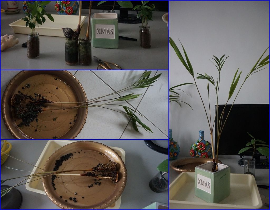 ▼種植的過程~將沉香、羅李亮及狐尾椰子組合種植