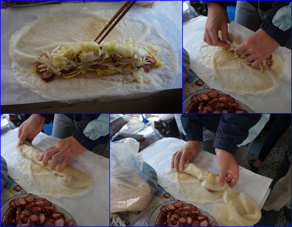 清明節吃潤餅的由來,查網路資料,才知道原來清明節的前一天叫「寒食節」,相傳是為了紀念春秋時代的忠臣「介之推」,在這一天都嚴禁煙火,所有人都不准升火,只吃冷食,所以稱為「寒食」。這幾年,寒食、清明已經混在一起,大多數人會在清明當天效法古人,到市場買薄麵皮回來,捲包當季的菜蔬做為食物,就稱為「潤餅」。