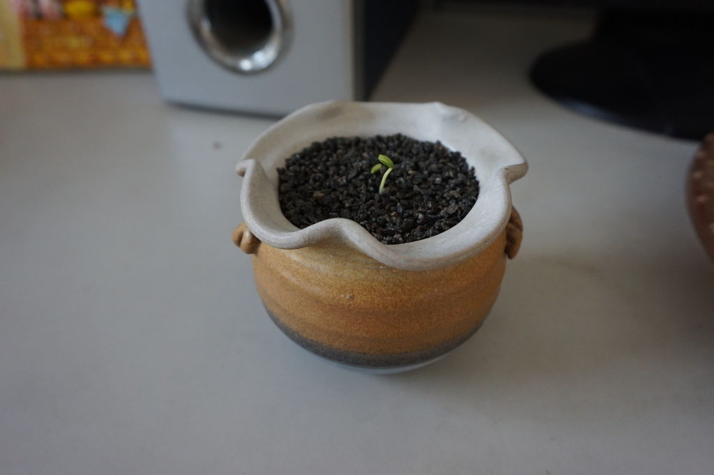 以下這盆石榴種子盆栽,當初是由石榴種子及椰棗種子一起合種的"種子盆組合盆栽",雖然2個種子都有發芽,但後來椰棗沒有成功長出葉子出來,只剩下石榴發芽展葉而已,以下是這盆"石榴+椰棗"種子盆栽的成長過程。
