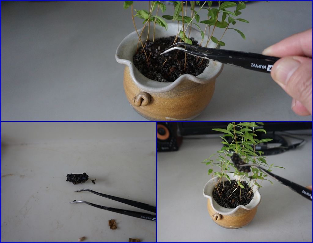 經過了4個過,再來看看這盆石榴+椰棗的種子組合盆栽,結果~石榴長高了不少,但椰棗確消失看不見了,原來已經"升天"了,沒有成功的展葉,整盆只剩下石榴而已。