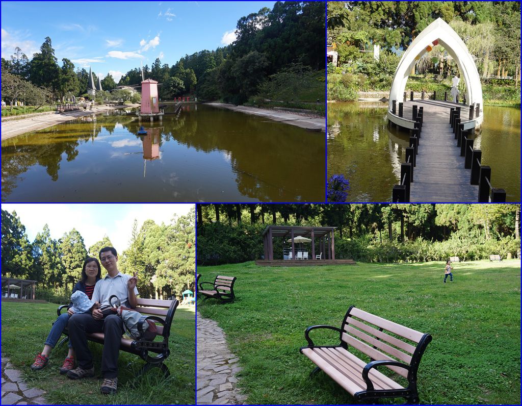 看到小瑞士花園照片就知道天氣很不錯,沒有下雨,有雲~有風,天氣有點涼爽,人又不會很多(大家都怕颱風來),所以我們在裡面逛了一陣子,再做下來吃點東西,看看水舞表演,心情好多了。
