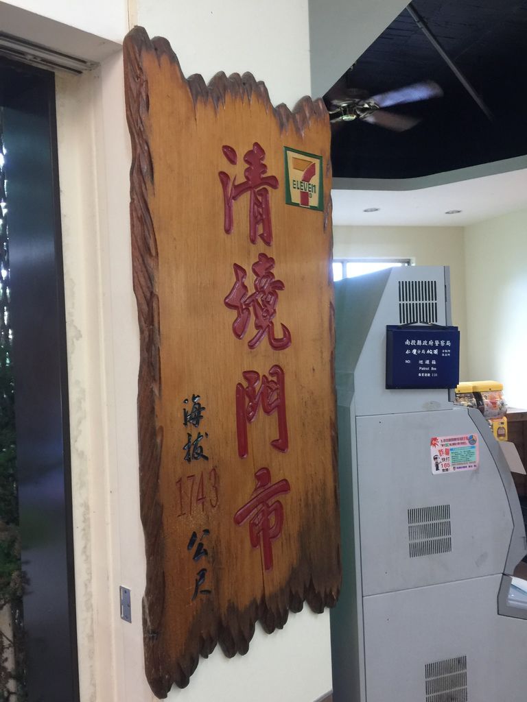 我們晚餐就在國民賓館旁邊的商店區吃飯,這裡有一家7-11清境門市,這曾經是台灣海拔最高的超商(海拔1743公尺),但這回我們上清境才發現,原來在清境不只有這家超商,原來有好多家,這家已經不是第一高了,而且搬到比較裡面,又不明顯,很多人都到小瑞士花園那家去買了。