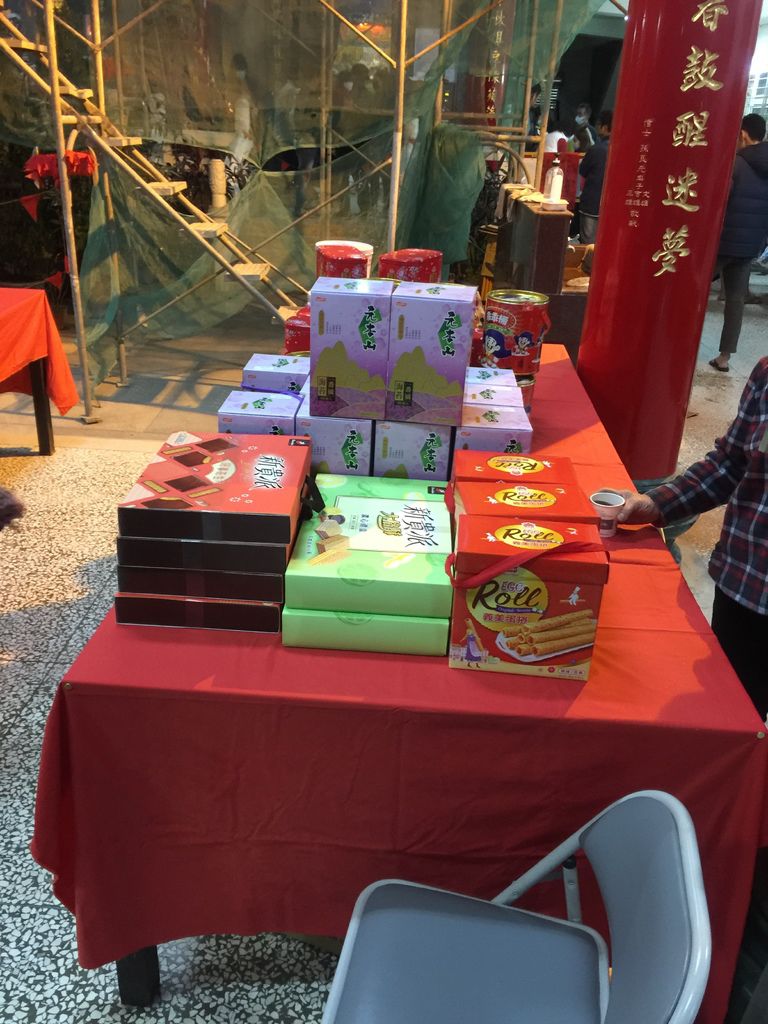 今年完宵節拜裡活動真的很冷清,博杯的禮品區還有不少糖果餅乾禮盒,可見人潮少很多,但我們還是有求得一盒平安餅乾,回家吃吃保平安,也希望今年都能平安順利、健健康康,也希望這次的武漢肺炎疫情趕快結束,大家回歸正常的生活。