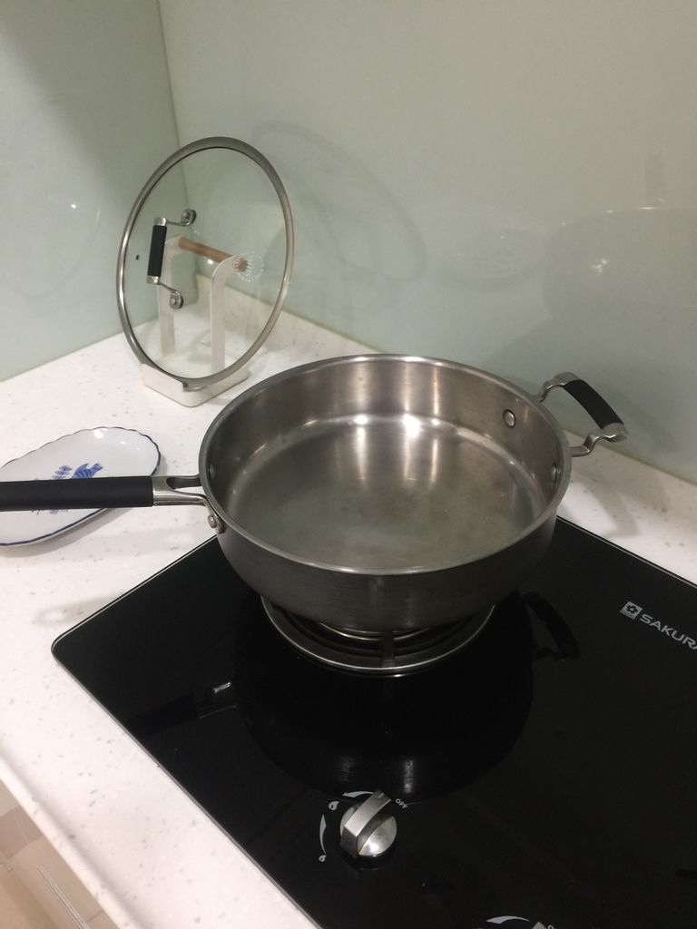 ▼在等煎肉時間的同時,就煮一壺熱水(快煮壺)~洗鍋子使用