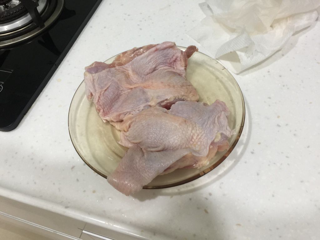 ▼雞腿排~退冰~剪除過多油脂~清洗再擦乾