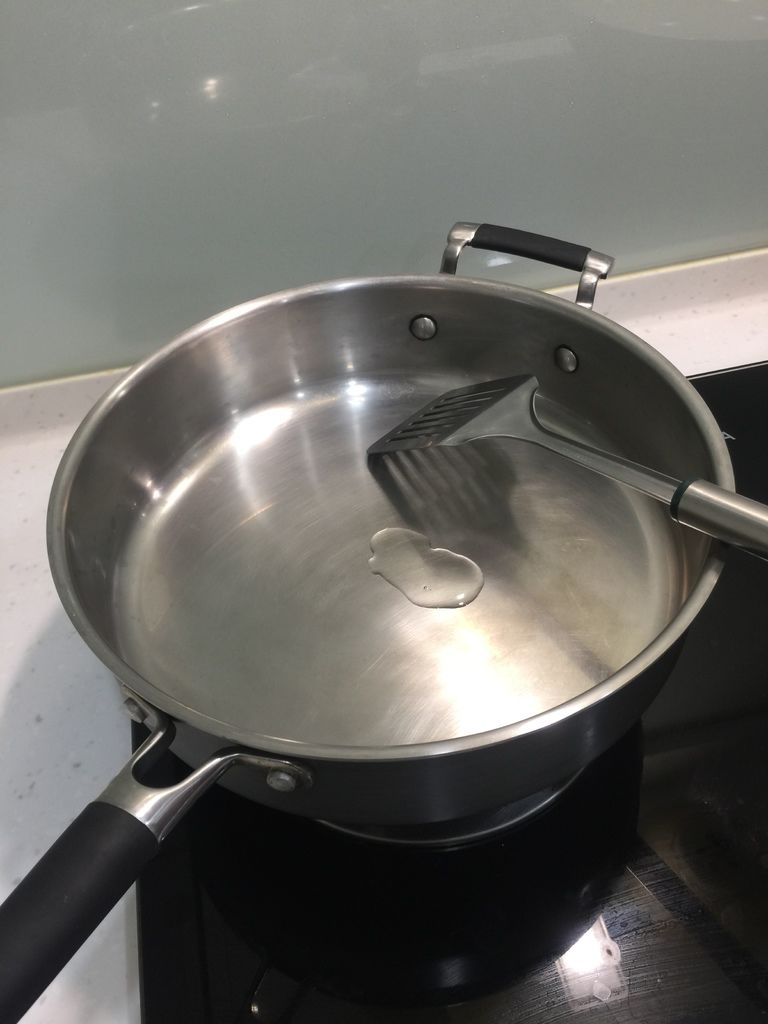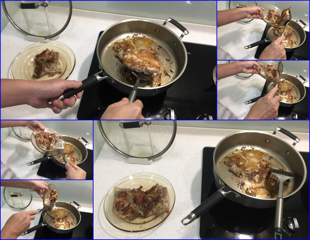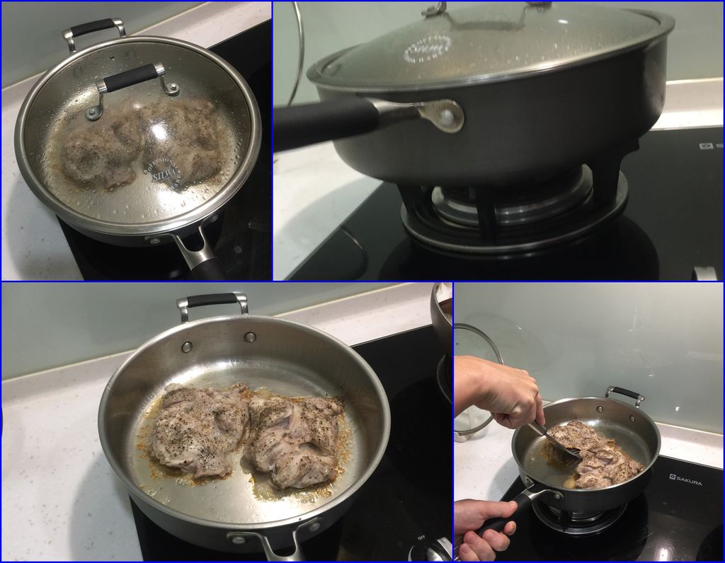 去年(2019年)底,在百貨公司買了一個不銹鋼平底鍋,目的之一,就是用來~香煎雞腿排~,因為第一次煎雞腿排時,使用不沾鍋,洗好久,很怕把不沾鍋刷壞,雖然看很多網路方法,都說不沾鍋是消耗品,壞了再買,但總覺太可惜,而且用了幾次不沾鍋,還是會沾污,每次都不太敢用力刷,於是買了一個不銹鋼平底鍋,用力刷也不怕刷壞,後來試了幾次,發現洗鍋子也有一些技巧、方法,用對了方法就事半功倍,很容易洗,所以現在煎肉、煎魚,只要容易卡油的,我們都拿這平底鍋來用。以下先來介紹"香煎雞腿排"的方法、心得及洗鍋的過程,簡單做幾道菜,全家人一起動手,一起吃晚餐,也是一種簡單幸福。