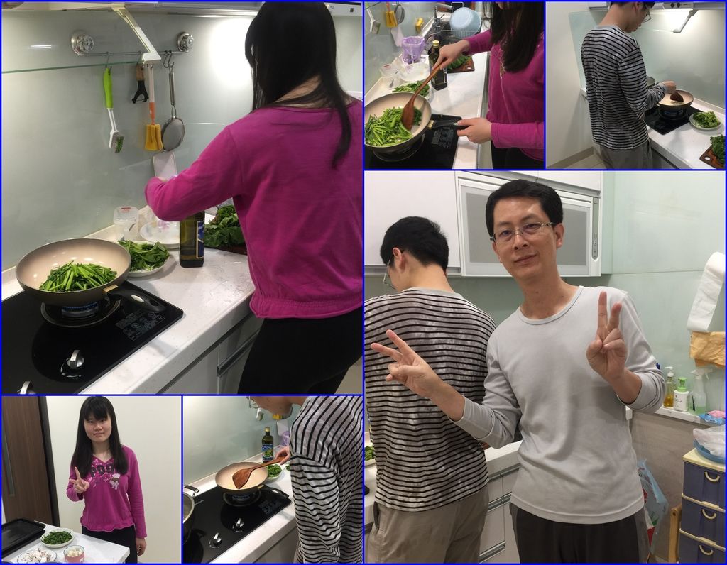 ▼在等煎雞腿排時~拍一下我兒子及女兒下廚的畫面~(這個寒假都在家,幫忙煮飯,備料、炒菜,全家人一起分工合作下廚)