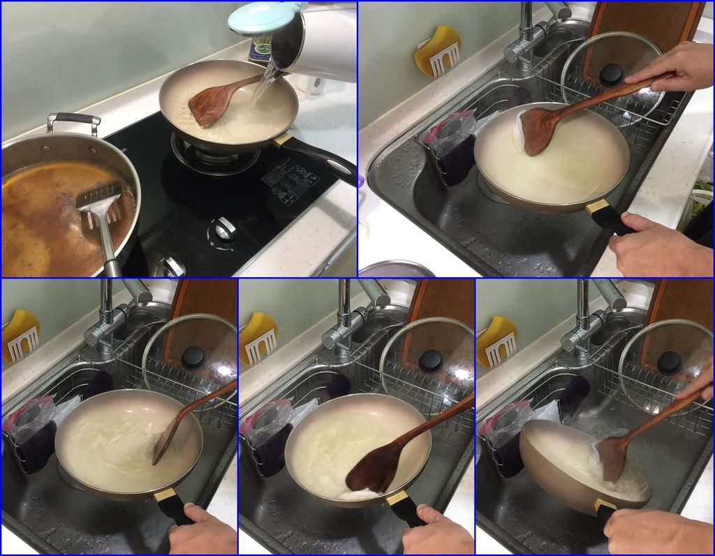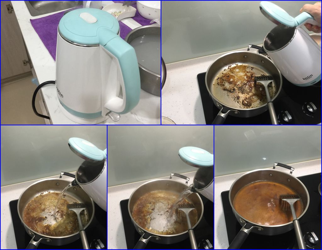 ▼洗鍋好技巧~使用熱水洗鍋子(使用快煮壺~大約5分鐘就可以煮好熱水)