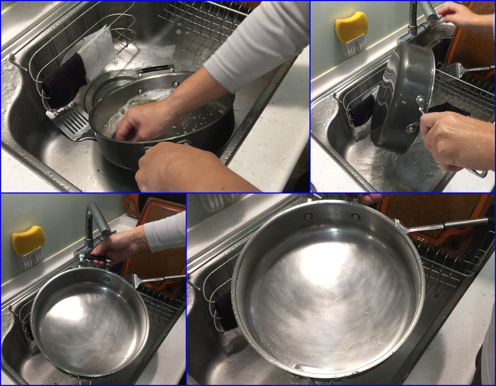 ▼不銹鋼平底鍋~用熱水+一些洗碗精+菜瓜布~清潔溜溜