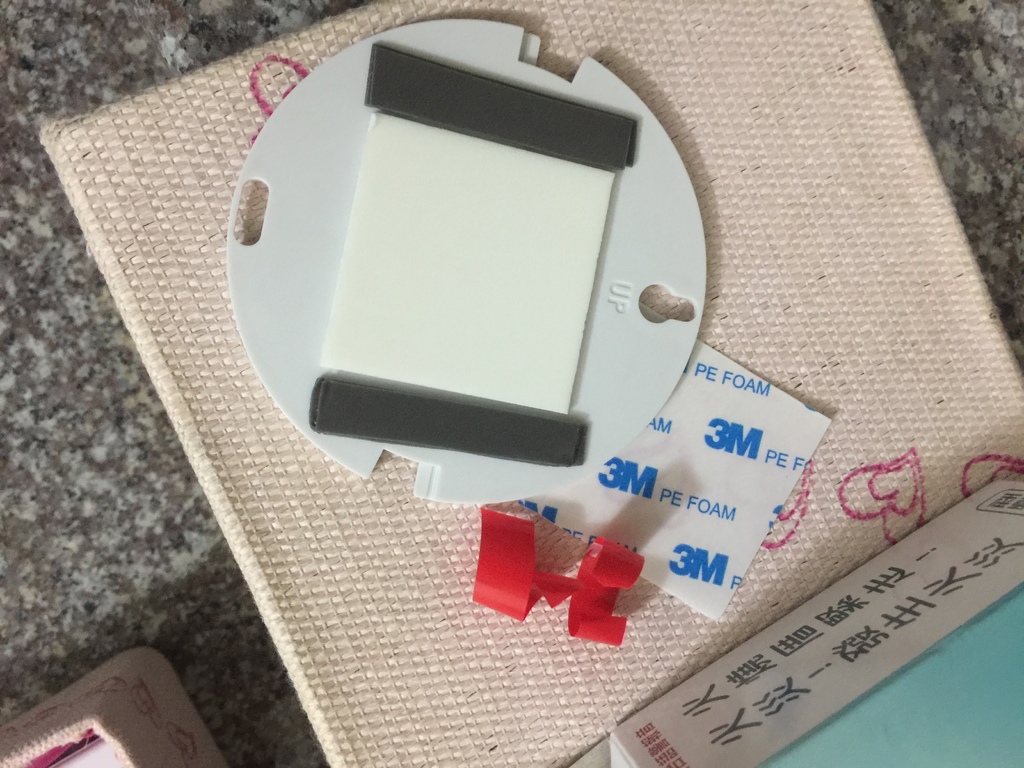▼先黏好原廠送的3M雙面膠(因為擔心黏不住,所以我另外加2段雙面膠~紅色的那2段)