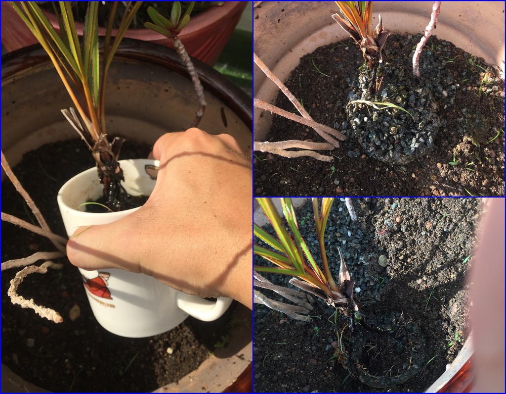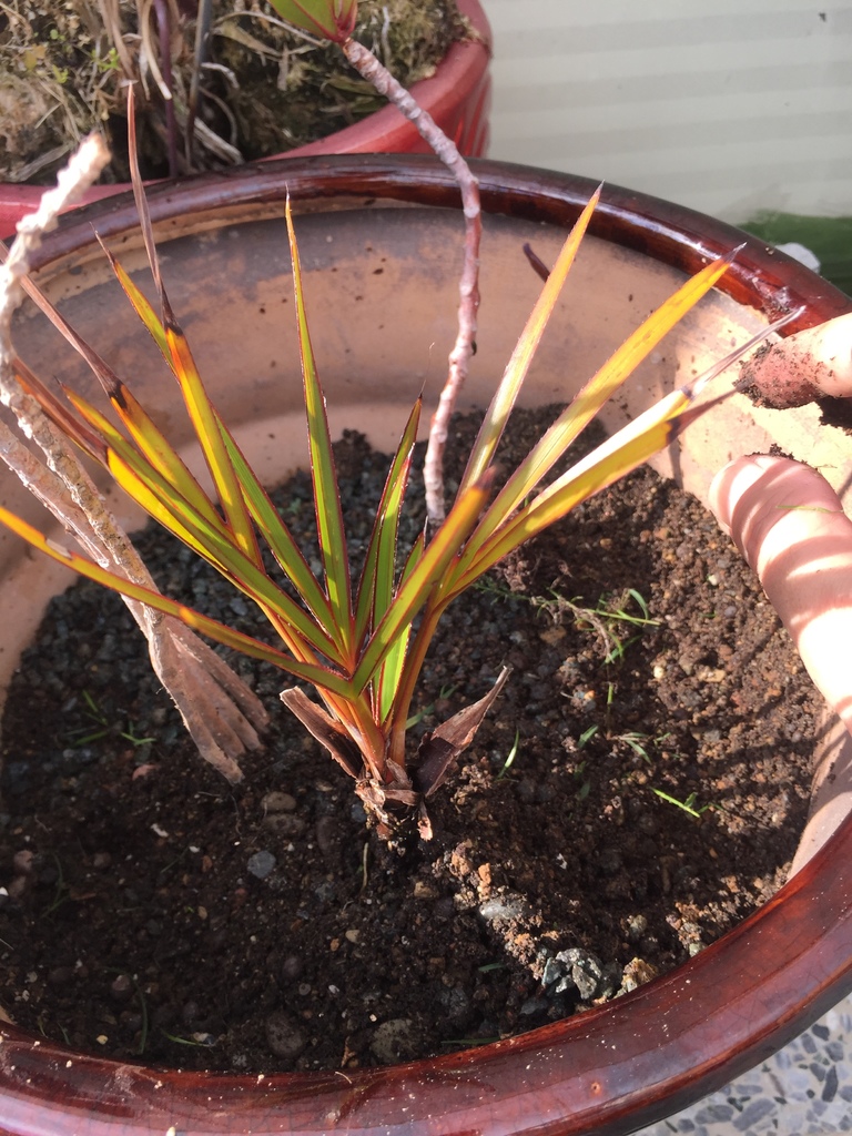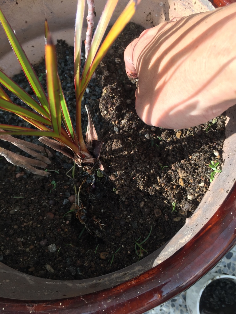 ▼想把這盆紅棕櫚種到大盆子裡