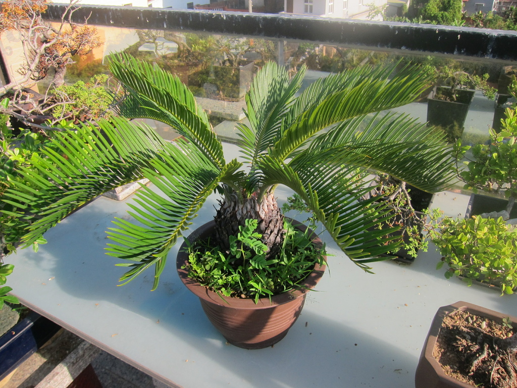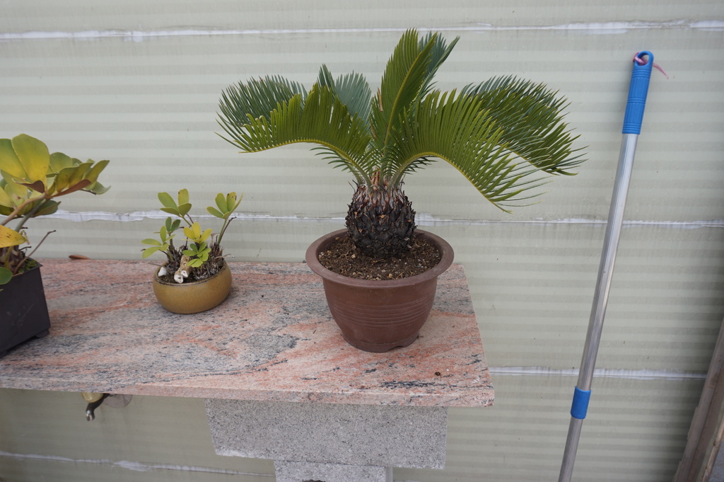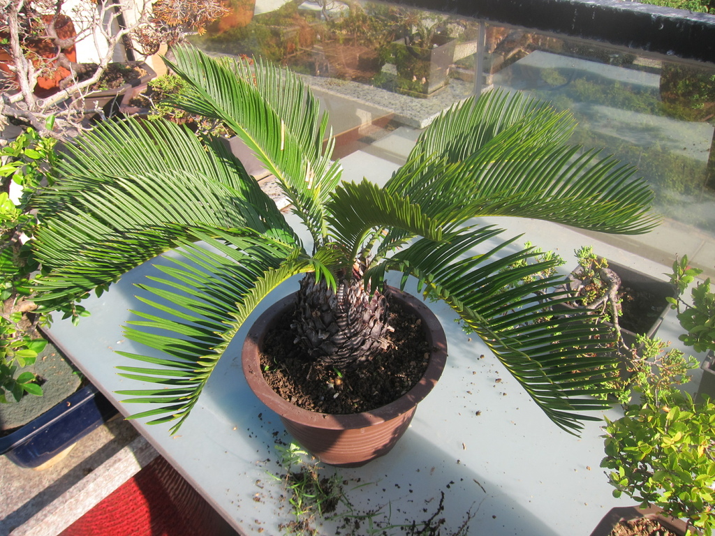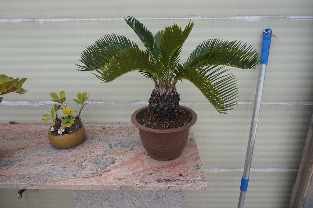 整理後的蘇鐵盆栽,乾淨清爽許多,換盆也讓它有空間再生長,只是我不太想讓它長太大,變成大盆栽,我家頂樓花園可容不下它。